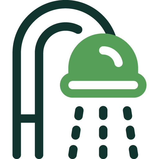 All accommodations include clean and functional bathrooms with hot showers, available at both homes and the campsite.