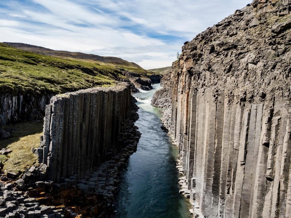 Experience the stillness of the valley, where basalt walls, clear air and shifting colors shape every moment, and where the canyon is easily accessed by hiking trails and steps down to the river.